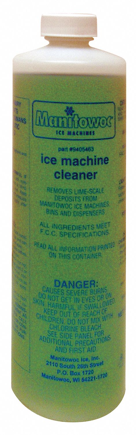 Manitowoc metal safe ice machine cleaner dissolves lime scale and mineral deposits from ice machine components.