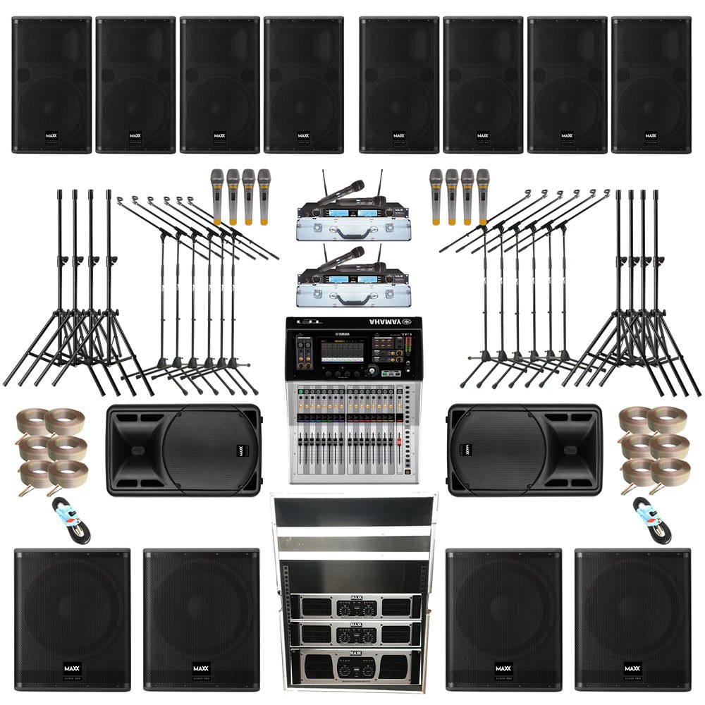 1 unit mixer 16ch yamaha 8 mic input 1 unit speaker management map 2600dsp maxx audio pro 2 unit speaker aktif map 1502sa maxx audio pro 15 inch 2 unit subwoofer aktif map 118sw maxx audio pro 18 inch 1 set mic wireless map 2000wm maxx audio pro digital uhf 2 unit stand speaker maxx audio pro.